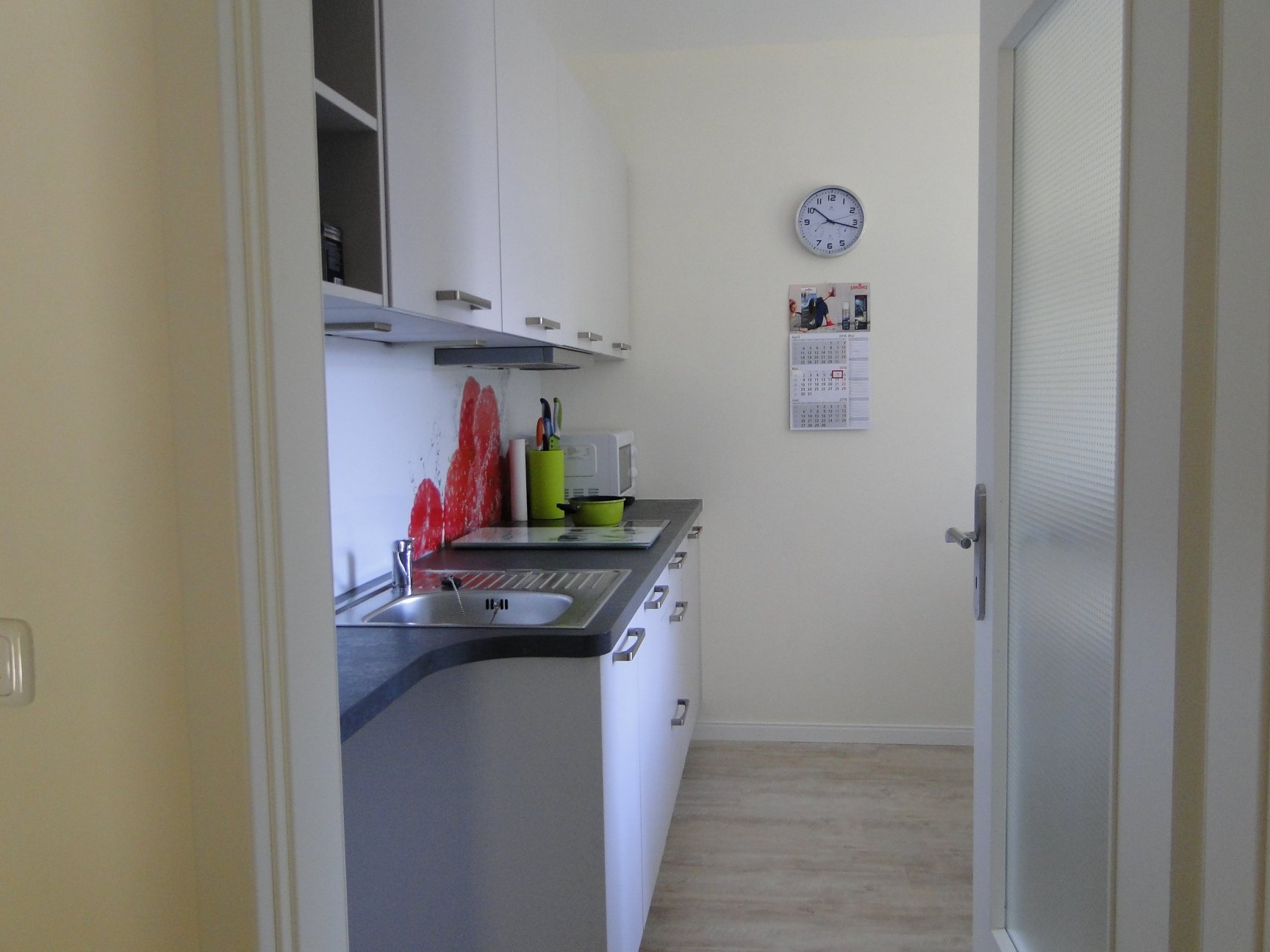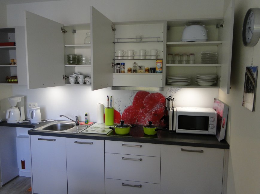 (Ceran-Kochfeld, Kühlschrank mit Gefrierfach, Spüle, Kaffeemaschine, Wasserkocher,