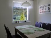 - voll ausgestattete Küche mit Fenster und Essplatz