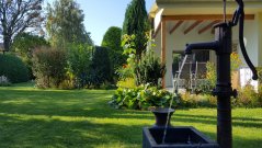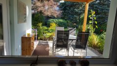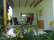 Das Apartment hat insgesamt 46 qm mit einem Wohnzimmer, Schlafzimmer, Küche und Dusche/WC sowie einer überdachten Terrasse, auf der man ausgezeichnet frühstücken oder abends die Seele baumeln lassen kann. Es ist für 2 Personen zugelassen, für einen weiteren Gast kann im Wohnzimmer gegen Aufpreis die Couch als Schlafsofa genutzt werden.