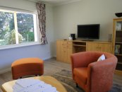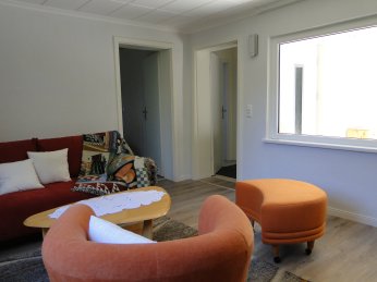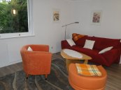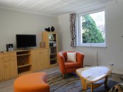 - Wohnzimmer hell und modern eingerichtet mit Flachbild-TV, Musik-Anlage, Schlafsofa